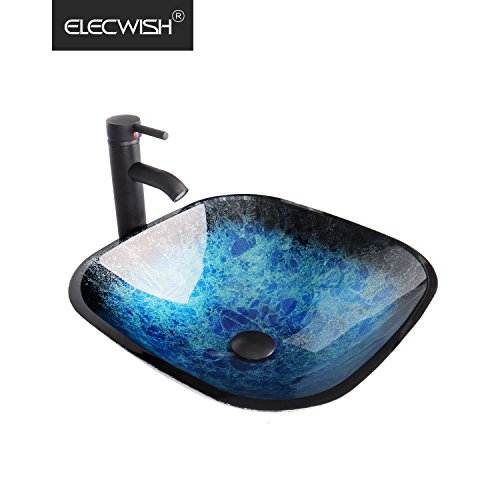 - Product Name: Elecwish,Square, Artistic Tempered Glass Vessel Sink Combo with Oil Rubber Bronze Faucet & Pop up Bathroom Bowl Ocean Blue (1/2" Compression)